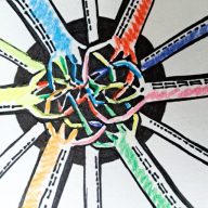 “Rondom Heks” nummer 15 uit een serie van 15 schilderijen. Formaat 40×50 Acrylverf en acrylmarker